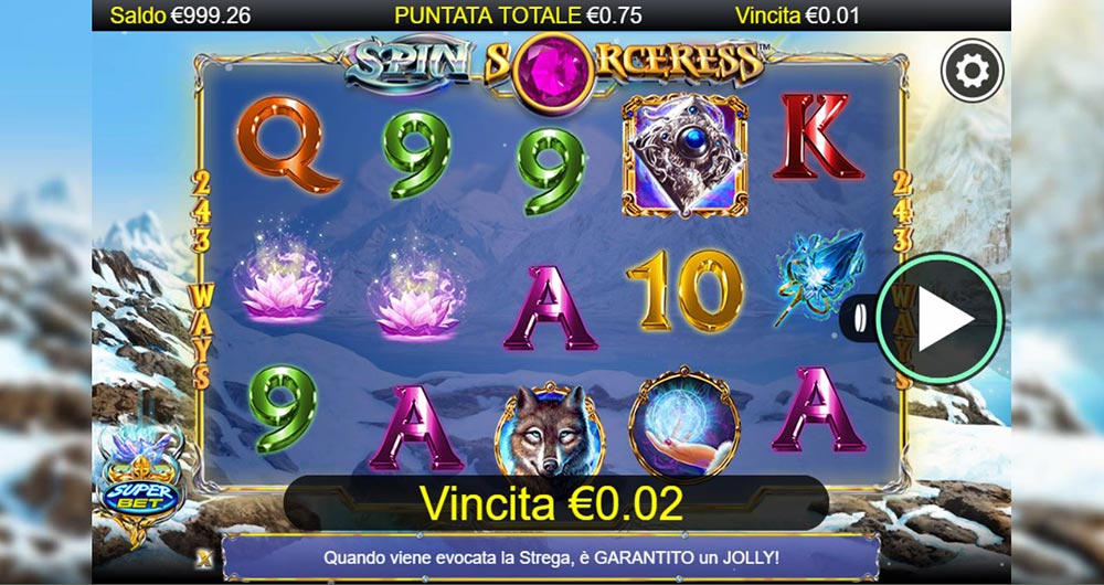 Spin Sorceness è una slot interessante sotto diversi aspetti. Il tema della macchinetta, la qualità grafica della slot e la modalità SuperBet sono caratteristiche che è difficile trovare in altre macchinette. Trovare e giocare a questa slot anche in versione slot gratis senza scaricare sul pc, non è di conseguenza complicato, visto che la stessa è presente in tutti i casinò italiani che propongono le slot di NextGen.